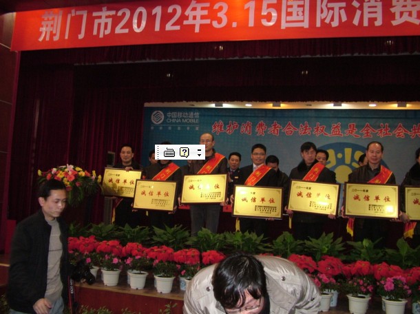 近日,市供水總公司在荊門市“萬名消費(fèi)者評誠信”活動中,經(jīng)廣大消費(fèi)者投票評選,被荊門市文明委、市工商行政管理局、市消費(fèi)委員會聯(lián)合授予“誠信單位”稱號,并頒發(fā)牌匾。