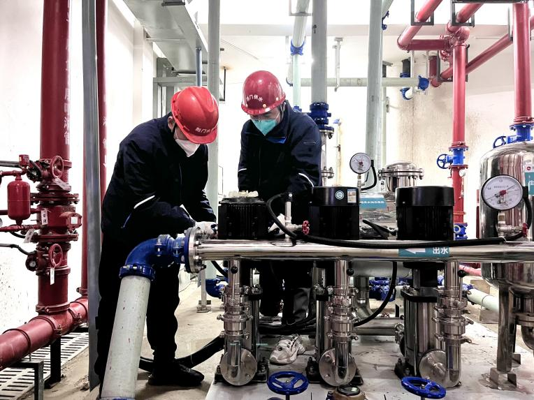 水務(wù)集團(tuán)二次設(shè)施運(yùn)維班在去年通過加裝排氣閥,解決了供水主管網(wǎng)停水或壓力波動較大時(shí),進(jìn)水罐處空氣泵機(jī)運(yùn)行異常問題。隨后馬不停蹄,以練代戰(zhàn),利用空余時(shí)間學(xué)習(xí)二次加壓設(shè)備電機(jī)運(yùn)行原理,并多次演練電機(jī)進(jìn)水后的快速搶修,工作效率得到大幅提升。
