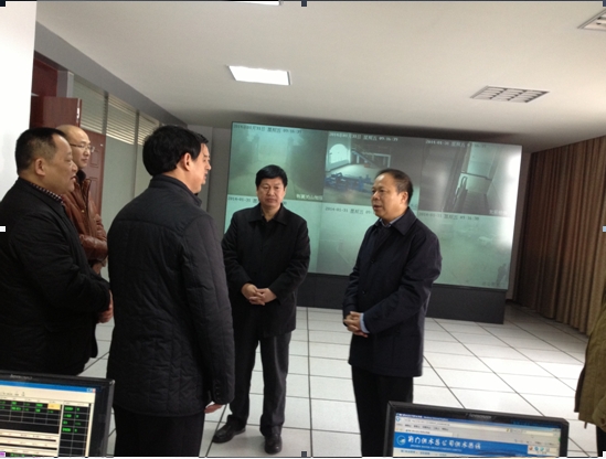 1月31日(正月初一)市委書記萬勇(右二),市委常委、秘書長周友坤(右三)慰問春節(jié)期間仍然堅守在工作崗位的供水員工,圖為在調度監(jiān)控中心時的情景。