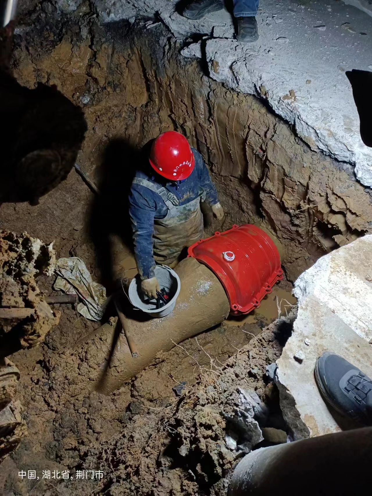 圖為12月23日城南新區(qū)關(guān)帝路DN300砼管維修現(xiàn)場
