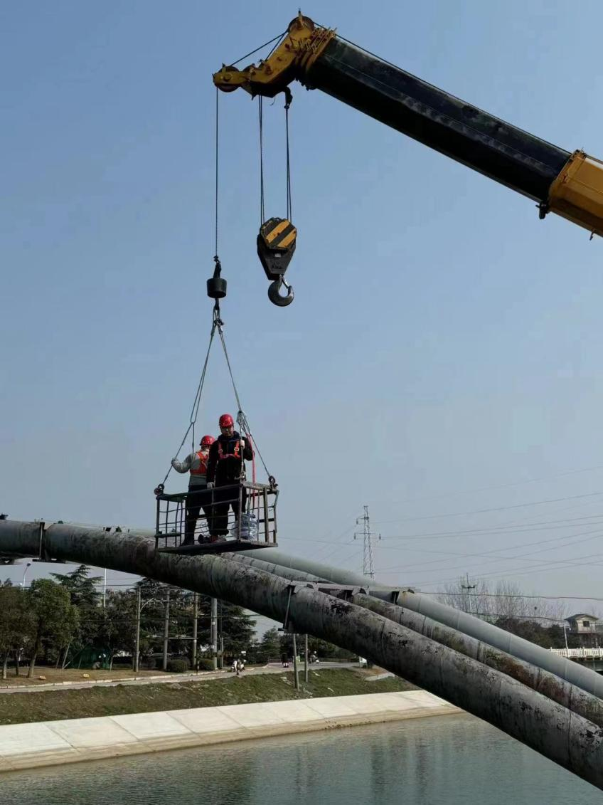 圖為工作人員在總干渠拱橋上更換排氣閥