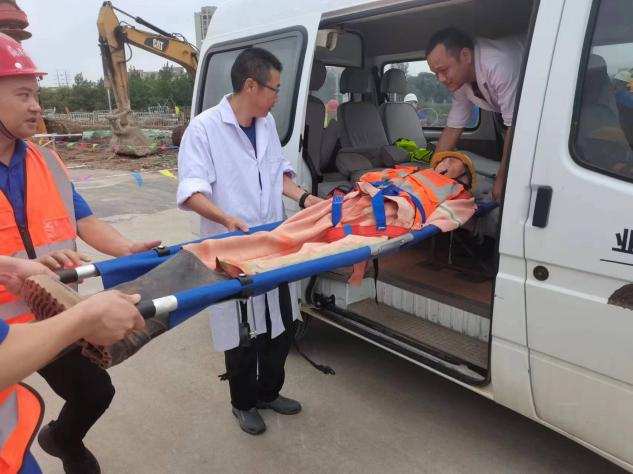 本次演練結(jié)合現(xiàn)場(chǎng)實(shí)際情況,生動(dòng)模擬了施工過程中“因突發(fā)雙排腳手架倒塌導(dǎo)致作業(yè)人員墜落并被擠壓”的緊急情況。所有參與人員嚴(yán)格按照崗位職責(zé),高效完成了從發(fā)現(xiàn)上報(bào)、應(yīng)急響應(yīng)、現(xiàn)場(chǎng)指揮、警戒設(shè)立、搶險(xiǎn)救援到醫(yī)療救護(hù)等一系列應(yīng)急處置流程。各方協(xié)同聯(lián)動(dòng),僅用15分鐘即完成演練任務(wù),達(dá)到預(yù)期效果。