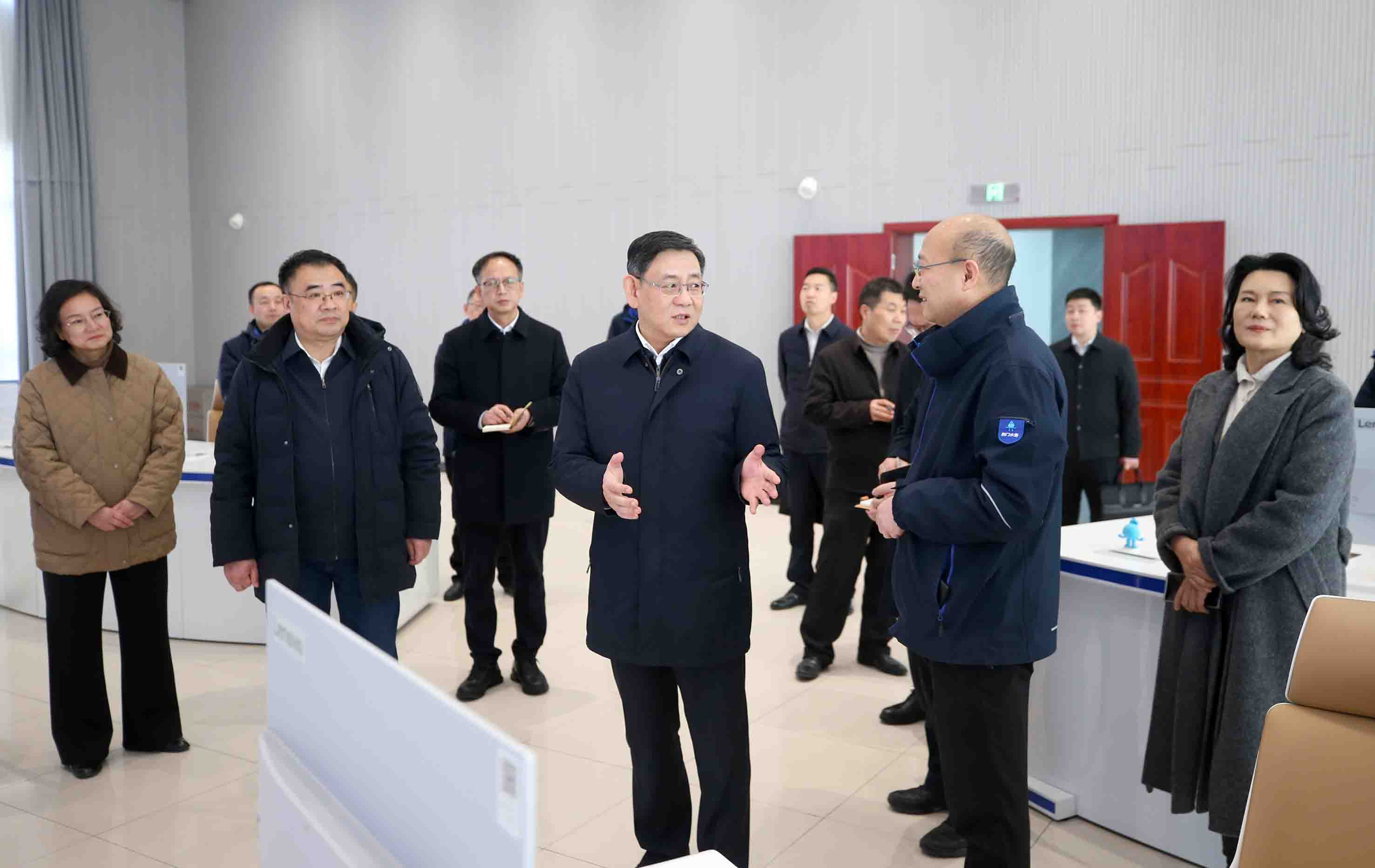在水務(wù)集團(tuán)調(diào)度指揮中心,胡亞波察看了全市用水調(diào)度情況,了解了春節(jié)期間應(yīng)急值守情況,詢問(wèn)了當(dāng)前城區(qū)整體水質(zhì)情況,并向堅(jiān)守在一線的干部職工致以節(jié)日問(wèn)候。