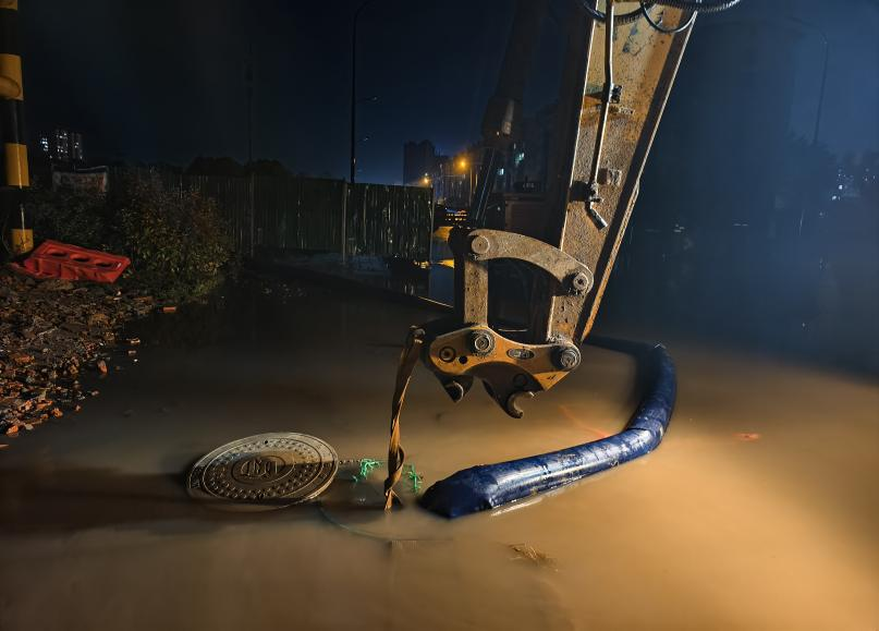此次降雨持續(xù)時間較長,搶險人員重點對積水嚴重的路段進行緊急處置,包括開啟雨水箅、檢查井蓋以加快排水速度,放置防洪罩防止次生災害,并對爆管點位進行專人值守,歷時12個小時圓滿完成防汛搶險任務(wù)。據(jù)統(tǒng)計,中心城區(qū)“三區(qū)”共發(fā)現(xiàn)16處積水及爆管嚴重點位,針對這些重點區(qū)域采取專項措施,如調(diào)用抽水設(shè)備進行抽排,確保積水迅速消退。降雨結(jié)束后,搶險人員對城區(qū)進行了全面排查,及時復位被雨水沖開的井蓋和雨水箅,徹底安全消除隱患。