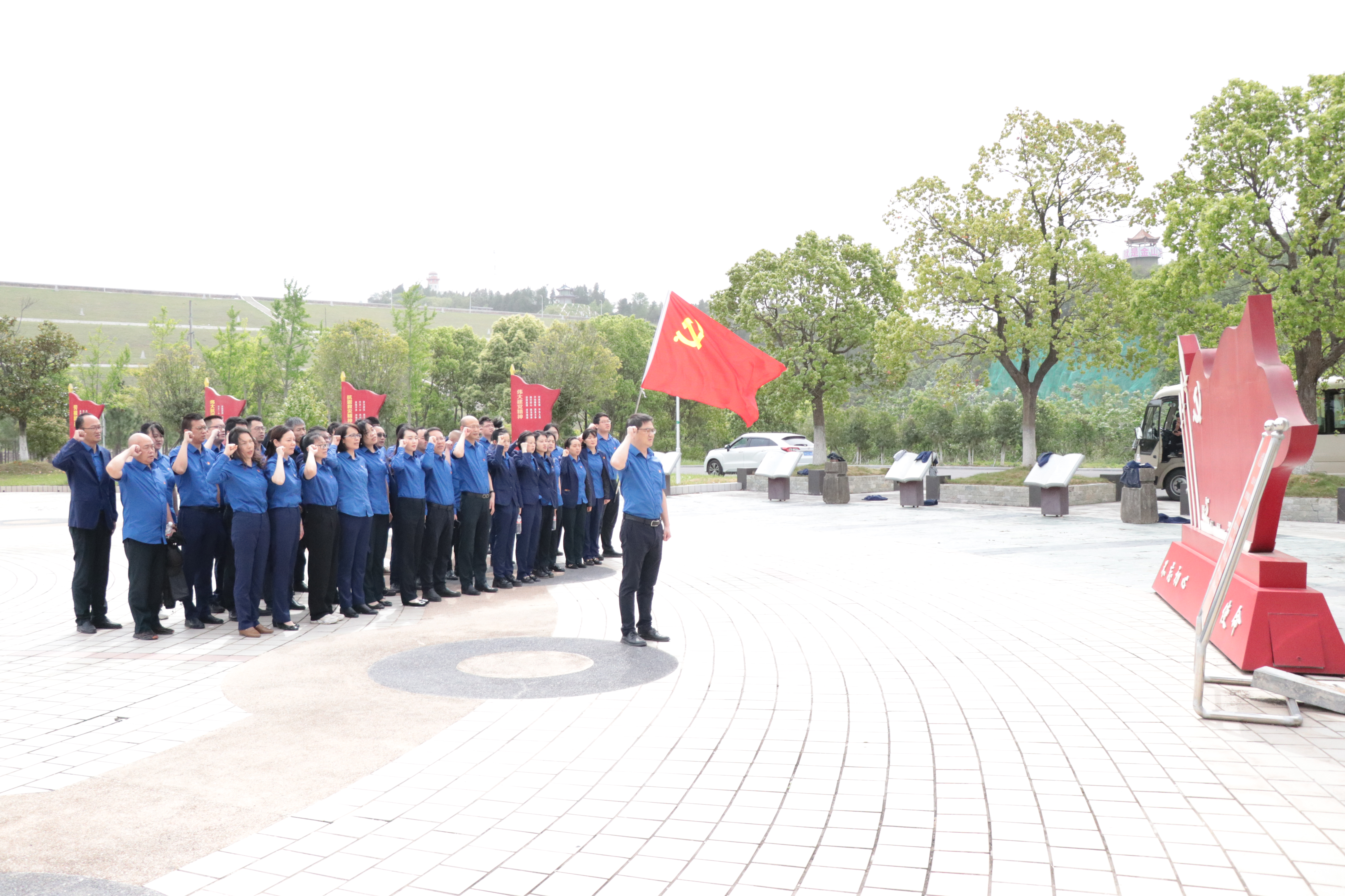 展覽館外,全體黨員肅穆列隊、緊握右拳,面對黨旗重溫入黨誓詞。鏗鏘誓言響徹現(xiàn)場,既是對入黨初心的回望,更是對新時代責任的莊嚴承諾,激勵黨員們以飽滿的熱情投身到工作中去。