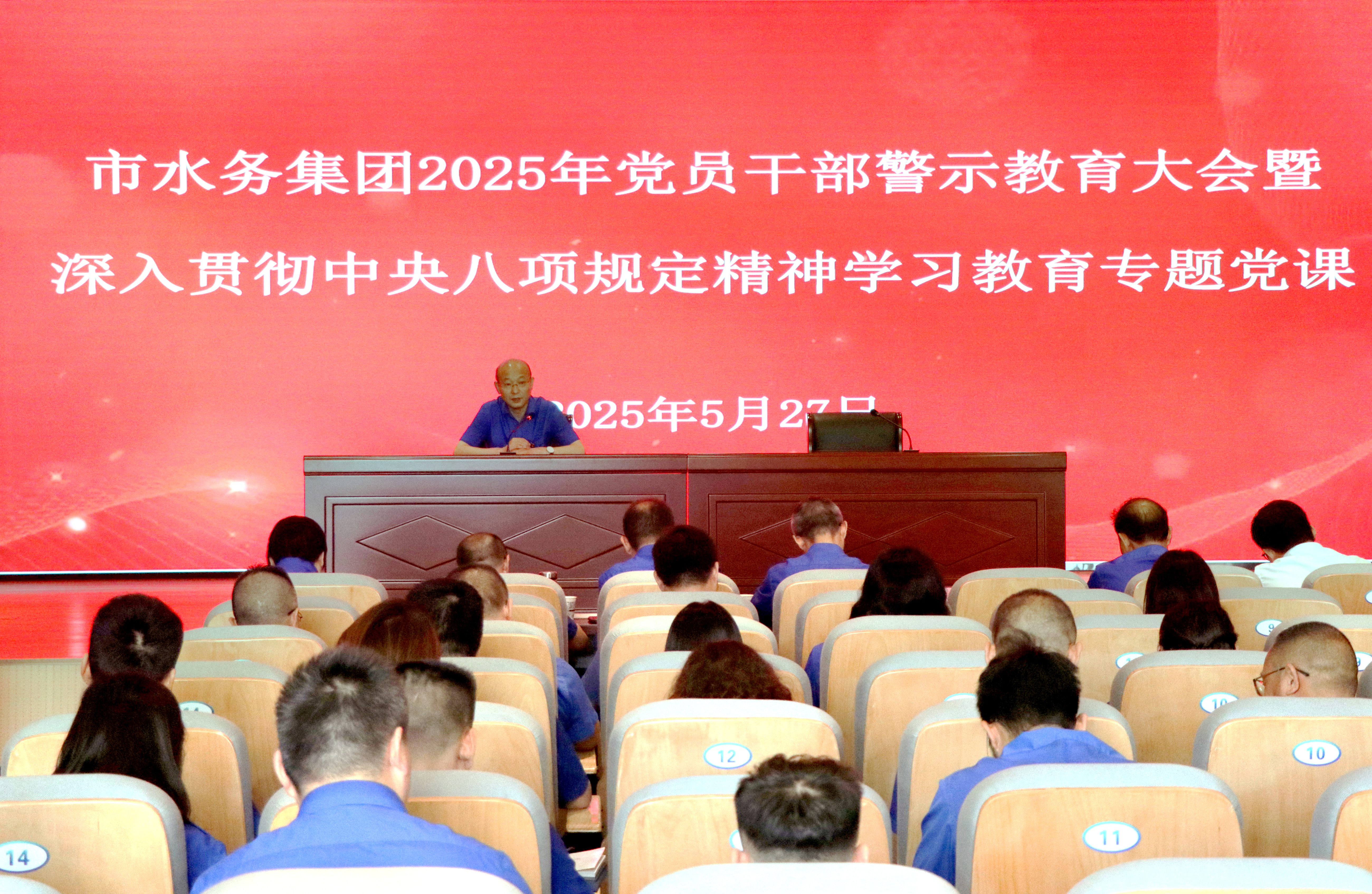 按照省、市關(guān)于深化中央八項規(guī)定精神學習教育相關(guān)要求,5月27日上午,市水務集團召開黨員干部警示教育大會暨深入貫徹中央八項規(guī)定精神學習教育專題黨課。會議組織觀看警示教育片,集團黨委書記、董事長陳永根講授專題黨課,集團黨委委員、紀委書記劉高軼主持會議。集團全體高層領(lǐng)導、中層干部及機關(guān)黨員參加會議。