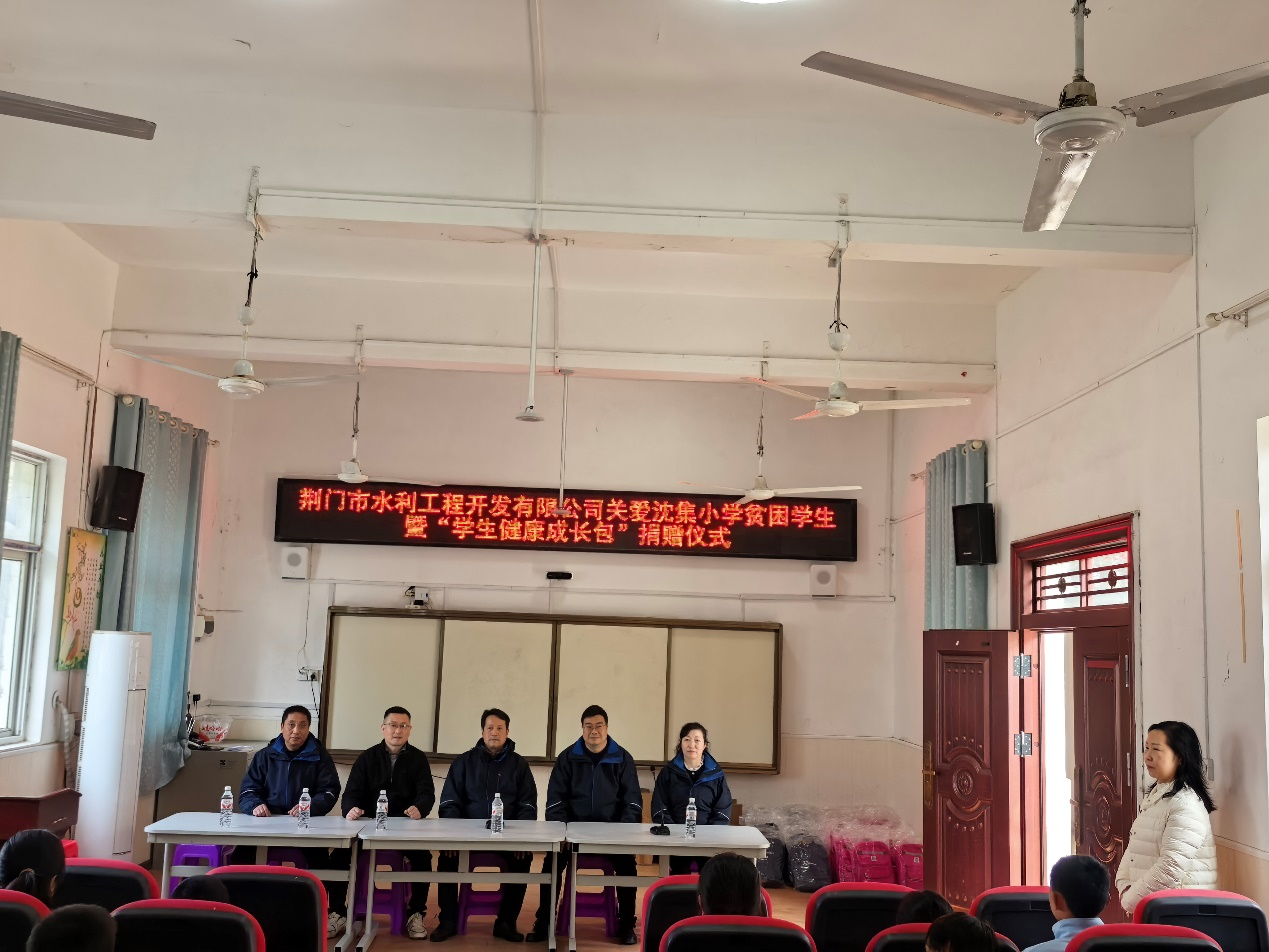 3月11日下午,荊門市水利工程開發(fā)有限公司(以下簡稱“荊門水發(fā)公司”)走進(jìn)沙洋縣沈集鎮(zhèn)中心小學(xué),開展市關(guān)工委組織的“關(guān)愛青少年健康成長包”專項(xiàng)捐贈活動。