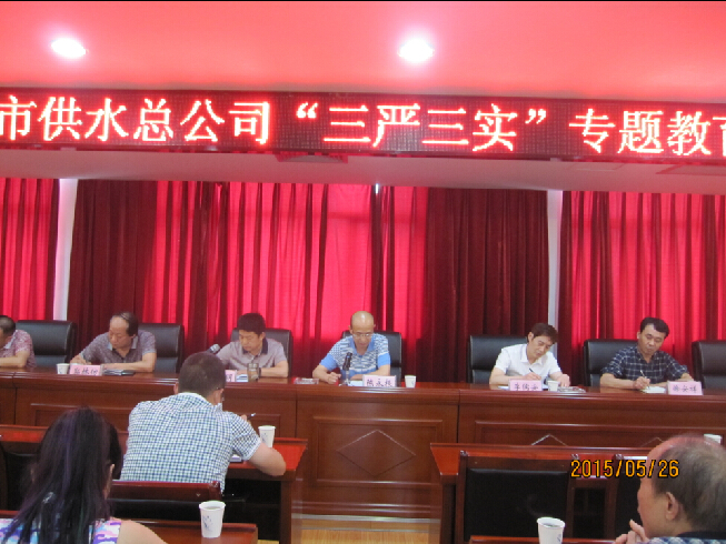 5月26日下午,市供水總公司在六樓會(huì)議室召開(kāi)三嚴(yán)三實(shí)專(zhuān)題教育活動(dòng)動(dòng)員會(huì),黨委書(shū)記、總經(jīng)理陳永根聯(lián)系公司實(shí)際為全體黨員上黨課。公司全體黨員、中層以上干部100余人參加,會(huì)議由黨委副書(shū)記、紀(jì)委書(shū)記、工會(huì)主席徐黎明主持。