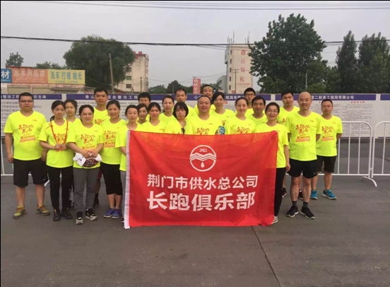 5月2日上午,荊門市供水總公司長(zhǎng)跑俱樂(lè)部24名職工組成的長(zhǎng)跑團(tuán)隊(duì)在“愛(ài)飛客”2016荊門國(guó)際馬拉松賽場(chǎng)一展風(fēng)采。