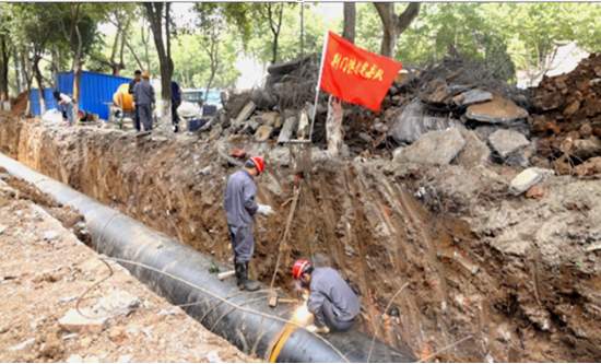 四條道路供水管線遷改工程時(shí)間緊、任務(wù)重,且施工難度大。由于道路施工工期緊張,施工單位都在全力趕工期,因此5月后進(jìn)入到管線遷改工作的白熱化階段。維修處全體干部職工充滿信心,全力以赴,不辱使命,挑戰(zhàn)自我。全體施工人員克服重重困難,采取“白+黑”、“5+2”連軸轉(zhuǎn)不停歇的工作模式,加班加點(diǎn),在保證安全質(zhì)量的前提下,加快施工進(jìn)度,確保四條道路管道遷移改造工作快速推進(jìn),圓滿完成總公司和工程建設(shè)指揮部下達(dá)的各項(xiàng)工作任務(wù)。