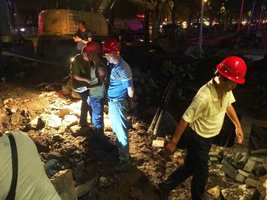 為配合道路改造,象山大道天鵝路至三眼橋DN1200新裝管道并網(wǎng)碰頭施工正連夜緊張進(jìn)行。為了盡量降低停水對(duì)市民帶來(lái)的影響,特意優(yōu)化施工方案,安排在今晚21時(shí)至明日凌晨6時(shí)進(jìn)行。市供水總公司黨委書(shū)記、總經(jīng)理陳永根,副總經(jīng)理羅家發(fā)來(lái)到施工現(xiàn)場(chǎng)靠前指揮,為勞累了一天的施工人員加油。此次施工完成也代表象山大道改造主供水管道工程畫(huà)上圓滿(mǎn)句號(hào)!辛苦我一人,清泉送萬(wàn)家,我們正在將搶拼嚴(yán)實(shí)精神發(fā)揚(yáng)到底,明晨,一覺(jué)醒來(lái),又會(huì)有歡快的自來(lái)水清澈大家的笑顏。