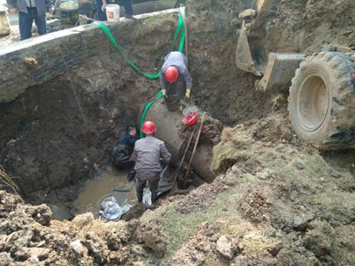 11月15日一大早,市供水總公司維修公司工作人員在日常巡查時,發(fā)現(xiàn)城區(qū)深圳大道東側(cè)供水管道發(fā)生漏水,有水不斷流出。隨后,搶修人員迅速趕到現(xiàn)場。經(jīng)過對現(xiàn)場的初步研判,搶修人員判定這一管道漏點不大。為不影響周邊居民生活,維修公司遂決定在不停水的情況下進行帶水作業(yè)。最終,通過安裝補漏卡、泄水、打口、養(yǎng)護等多道工序,順利完成了受損供水管道的維修工作。