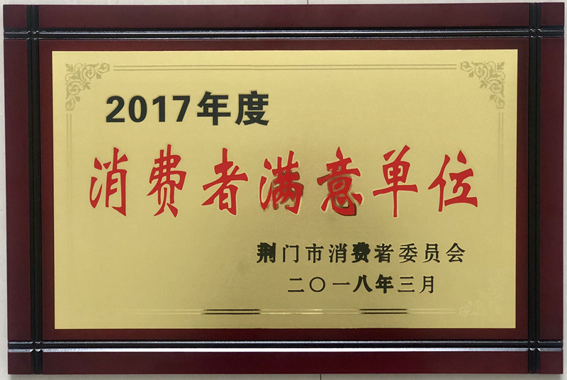 荊門(mén)市供水總公司喜榮“2017年度消費(fèi)者滿意單位”稱號(hào)