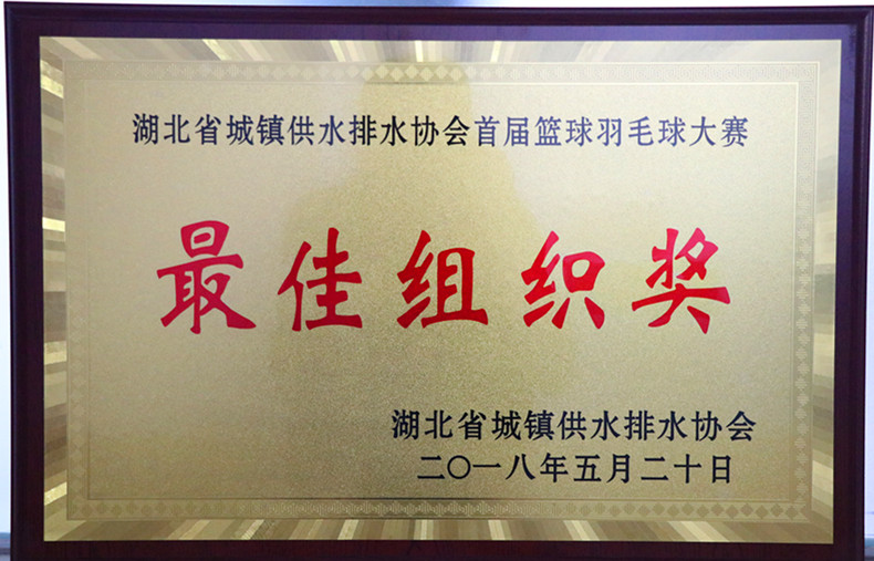 省城鎮(zhèn)供水排水協(xié)會(huì)首屆籃球賽羽毛球賽于5月16日至19日成功舉辦。鑒于市供水總公司的精心籌備和優(yōu)秀組織,省水協(xié)授予我公司最佳組織獎(jiǎng)并贈(zèng)送錦旗以示感謝。錦旗上書(shū)寫(xiě):“鼎力搭建展示行業(yè)風(fēng)采平臺(tái)傾情澆灌荊楚水務(wù)友誼之花”。
