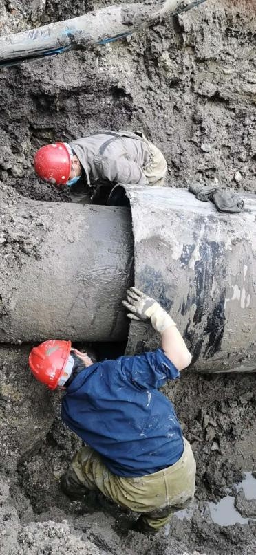 為盡快恢復(fù)供水,參與搶修人員直到下午2點(diǎn)才顧得上在現(xiàn)場(chǎng)匆忙吃一碗方便面午餐,下午4:40搶修工作順利完成,待封堵的水泥養(yǎng)護(hù)強(qiáng)度合格后于當(dāng)晚8點(diǎn)該管線完全恢復(fù)正常供水。